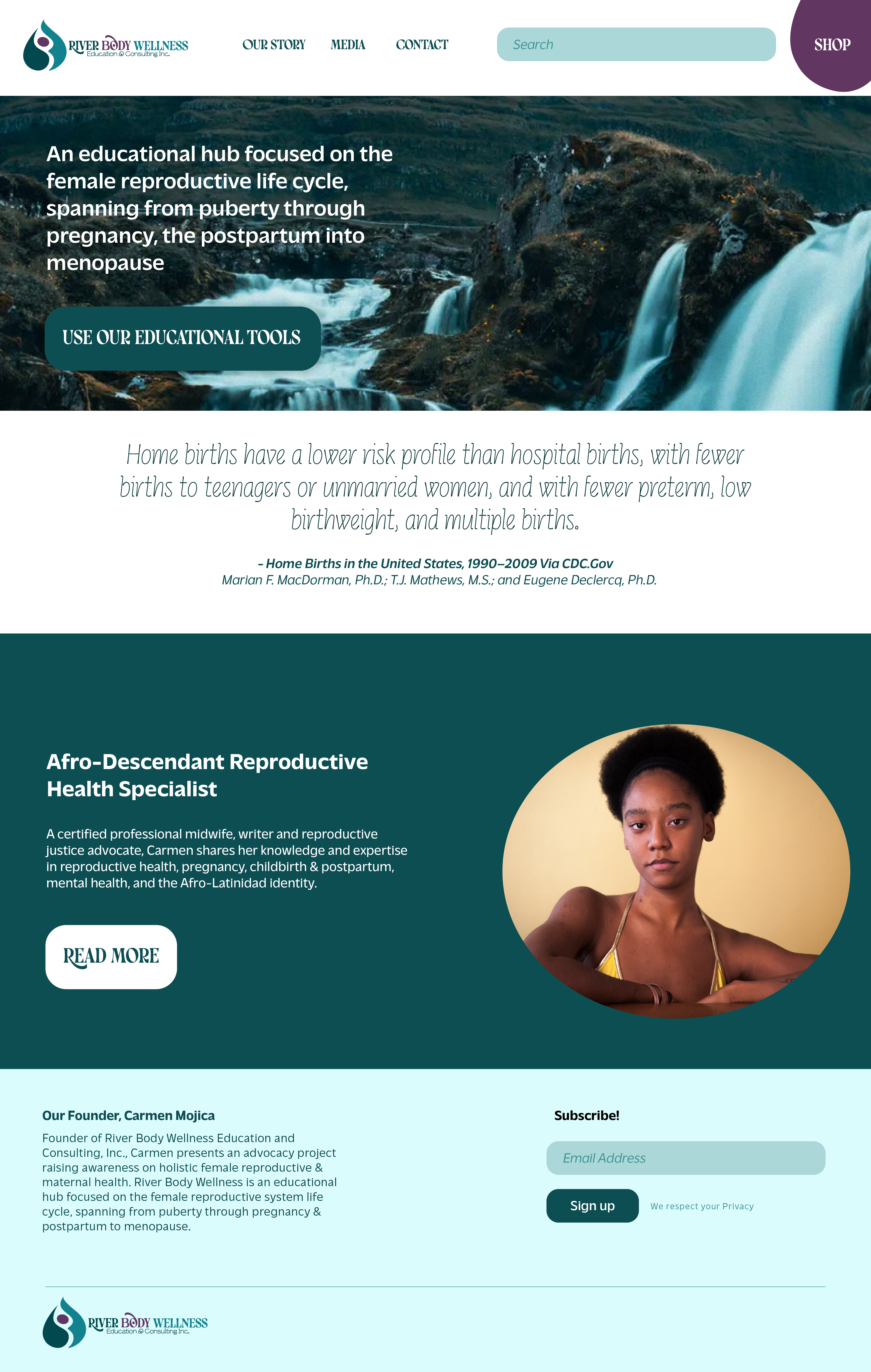 The Rivers and Birth were part of the Branding from the beginning, The white space between the Shapes are meant to be split rivers, and the Purple dot is an abstract idea of a child within its mother's belly (The B also standing in for a Baby Bump). The idea of the Child in the Body is repeated in the "O" For River Body Wellness. Below are some logo Variants.